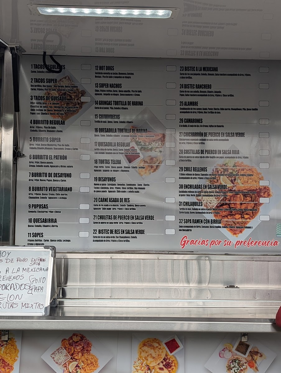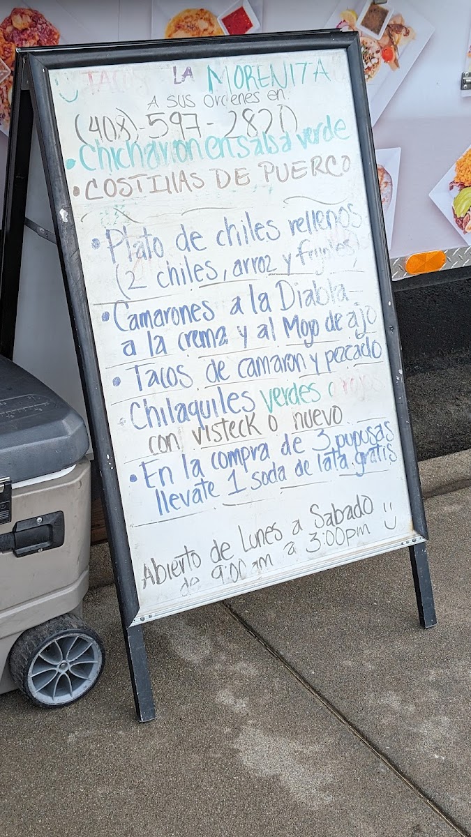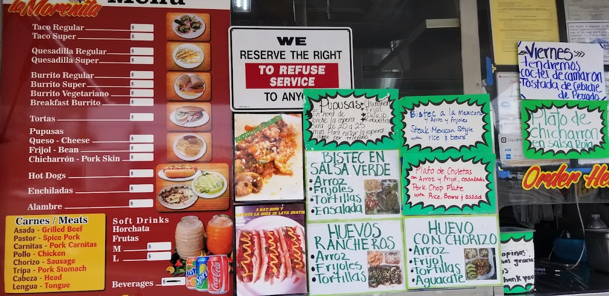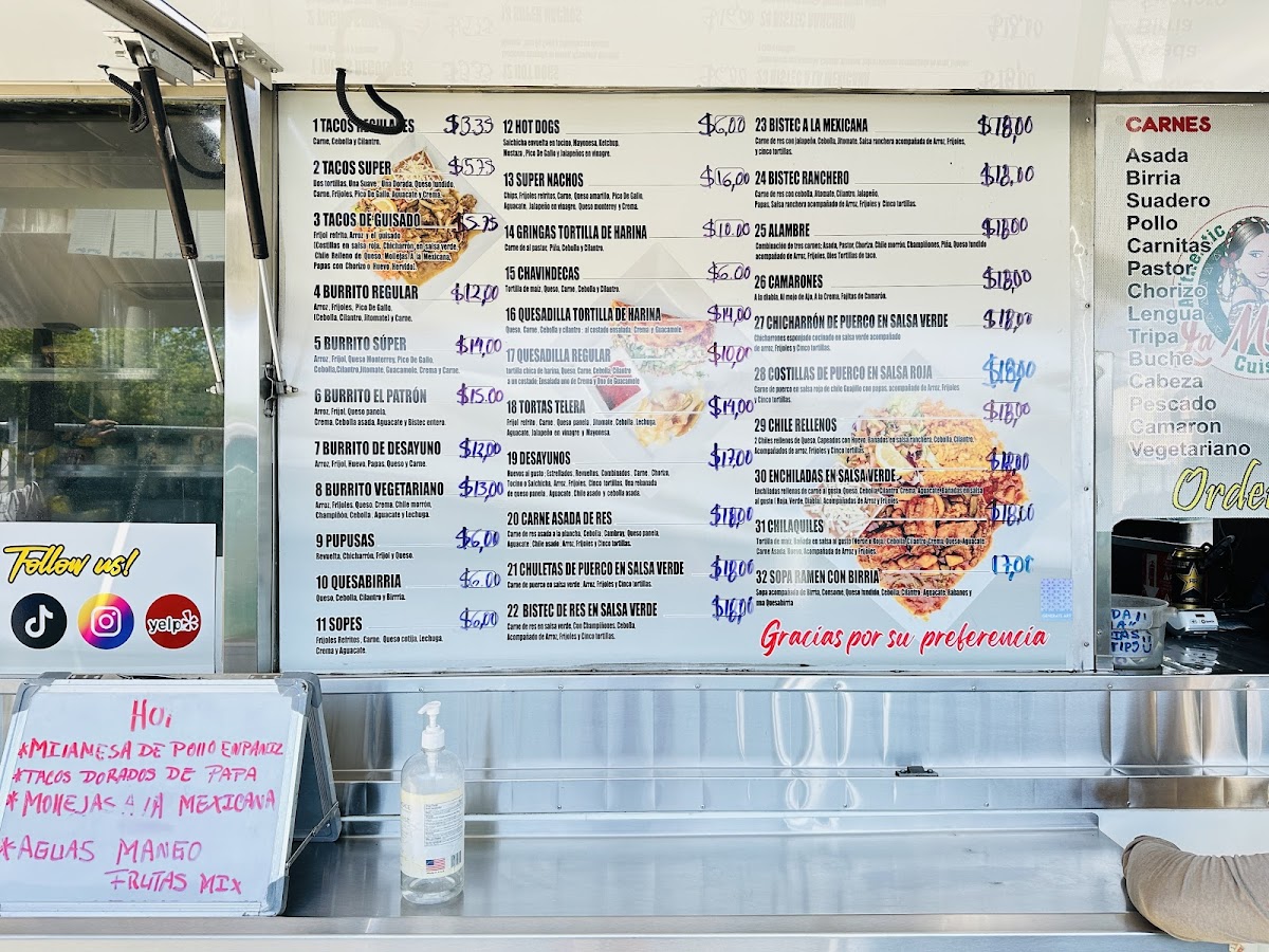 Tacos La Morenita offers a diverse and flavorful menu, perfect for fans of Mexican cuisine. The restaurant's tortas are a highlight, with options like the Torta De Lengua (Beef Tongue Torta), Torta De Pastor, and Torta De Pollo (Chicken Torta), each offering a hearty and delicious sandwich experience. Their tacos regulares include mouthwatering choices such as Taco Regular De Birria and Taco Regular De Lengua, as well as a variety of meats like Cabeza and Pastor. For something even more substantial, their super tacos are a must-try, featuring fillings like Super Taco De Carnitas, Super Taco De Chorizo, and even Super Taco De Pescado (Fish Taco). If you're craving burritos, the Burrito Regular De Birria and Burrito Regular De Asada are crowd favorites, while the Super Burrito De Camarón (Super Shrimp Burrito) offers an exciting seafood twist. Additionally, the quesadillas regulares such as Quesadilla Regular De Asada and Quesadilla Regular De Tripa deliver a satisfying mix of flavor and crunch. For a unique take on tacos, try the Quesabirria, a flavorful combination of quesadilla and birria. For those looking for something more filling, the platillos like the Plato De Bistec En Salsa Verde Con Champiñones (Steak in Green Sauce with Mushrooms) or the Plato De Fajitas De Camarón (Shrimp Fajitas) provide substantial plates to enjoy. The menu also includes a variety of refreshing bebidas such as Coca-Cola Mexicana and Redbull, perfect for pairing with any meal. Whether you're in the mood for a quick taco or a hearty plate, Tacos La Morenita has something to satisfy every craving.