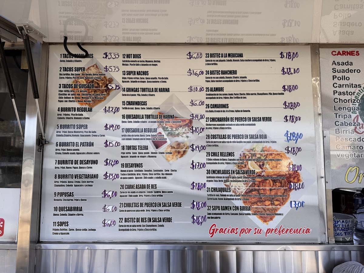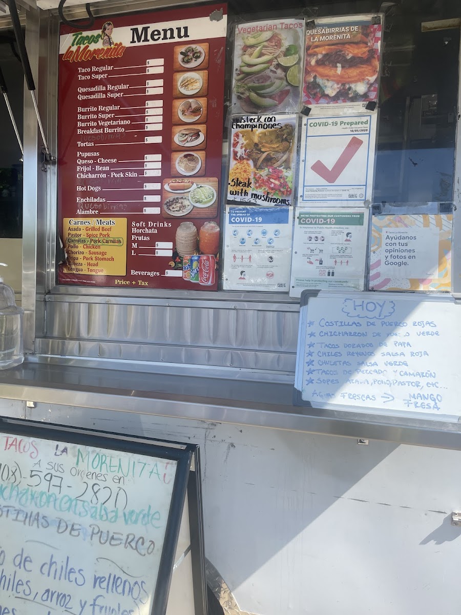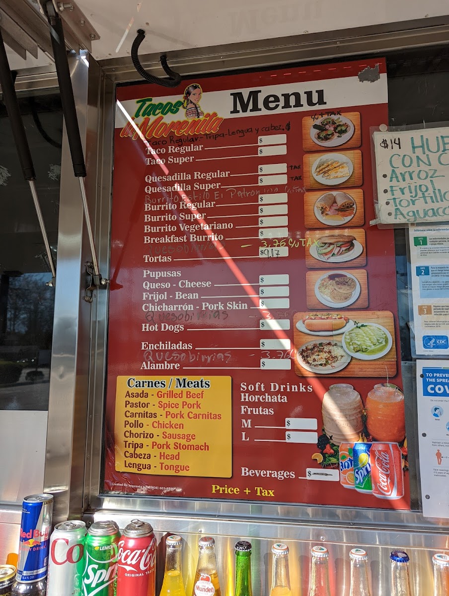 Tacos La Morenita offers a diverse and flavorful menu, perfect for fans of Mexican cuisine. The restaurant's tortas are a highlight, with options like the Torta De Lengua (Beef Tongue Torta), Torta De Pastor, and Torta De Pollo (Chicken Torta), each offering a hearty and delicious sandwich experience. Their tacos regulares include mouthwatering choices such as Taco Regular De Birria and Taco Regular De Lengua, as well as a variety of meats like Cabeza and Pastor. For something even more substantial, their super tacos are a must-try, featuring fillings like Super Taco De Carnitas, Super Taco De Chorizo, and even Super Taco De Pescado (Fish Taco). If you're craving burritos, the Burrito Regular De Birria and Burrito Regular De Asada are crowd favorites, while the Super Burrito De Camarón (Super Shrimp Burrito) offers an exciting seafood twist. Additionally, the quesadillas regulares such as Quesadilla Regular De Asada and Quesadilla Regular De Tripa deliver a satisfying mix of flavor and crunch. For a unique take on tacos, try the Quesabirria, a flavorful combination of quesadilla and birria. For those looking for something more filling, the platillos like the Plato De Bistec En Salsa Verde Con Champiñones (Steak in Green Sauce with Mushrooms) or the Plato De Fajitas De Camarón (Shrimp Fajitas) provide substantial plates to enjoy. The menu also includes a variety of refreshing bebidas such as Coca-Cola Mexicana and Redbull, perfect for pairing with any meal. Whether you're in the mood for a quick taco or a hearty plate, Tacos La Morenita has something to satisfy every craving.